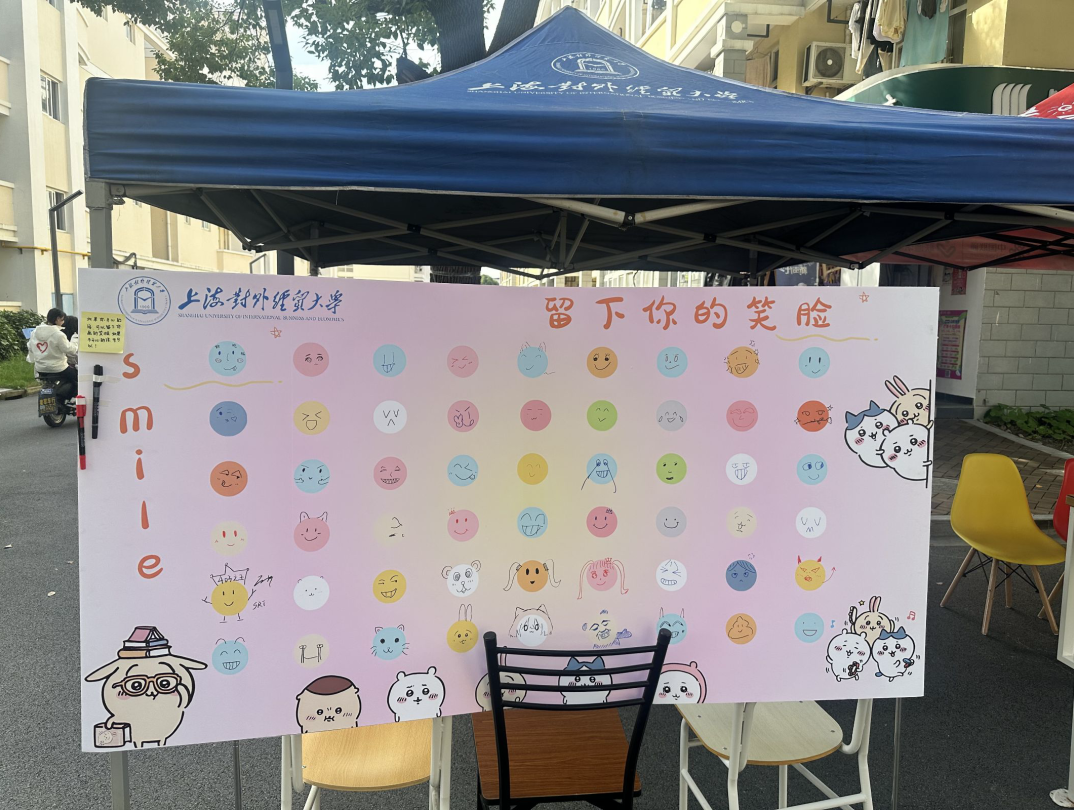 10月29日中午,为加强宣传心理健康知识,助力青年学子健康成长、全面发展,传递阳光力量,统计与信息学院学生会在上海对外经贸大学学生社区开展了“我为同学办实事”专场活动,本次主题是心理健康——留下你的笑脸吧!活动中,大家通过手绘笑脸,传递积极向上的心理健康理念,他们以微笑点亮点亮校园,用笑脸去感染身边的每一个人,让快乐的情绪在校园中进行传播。