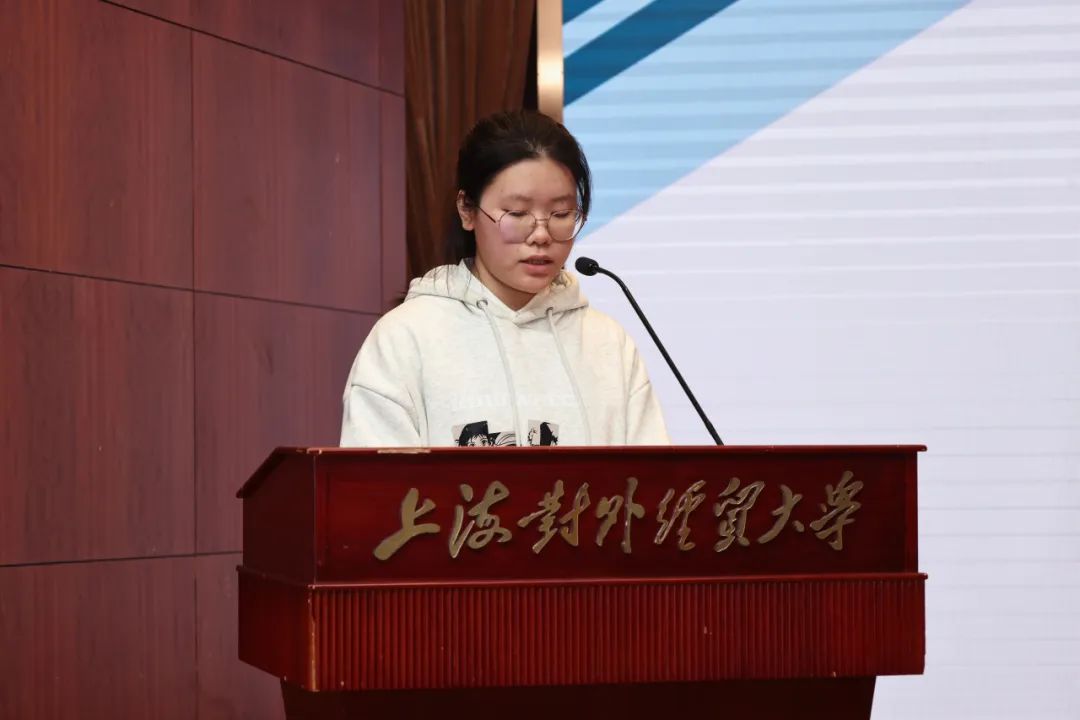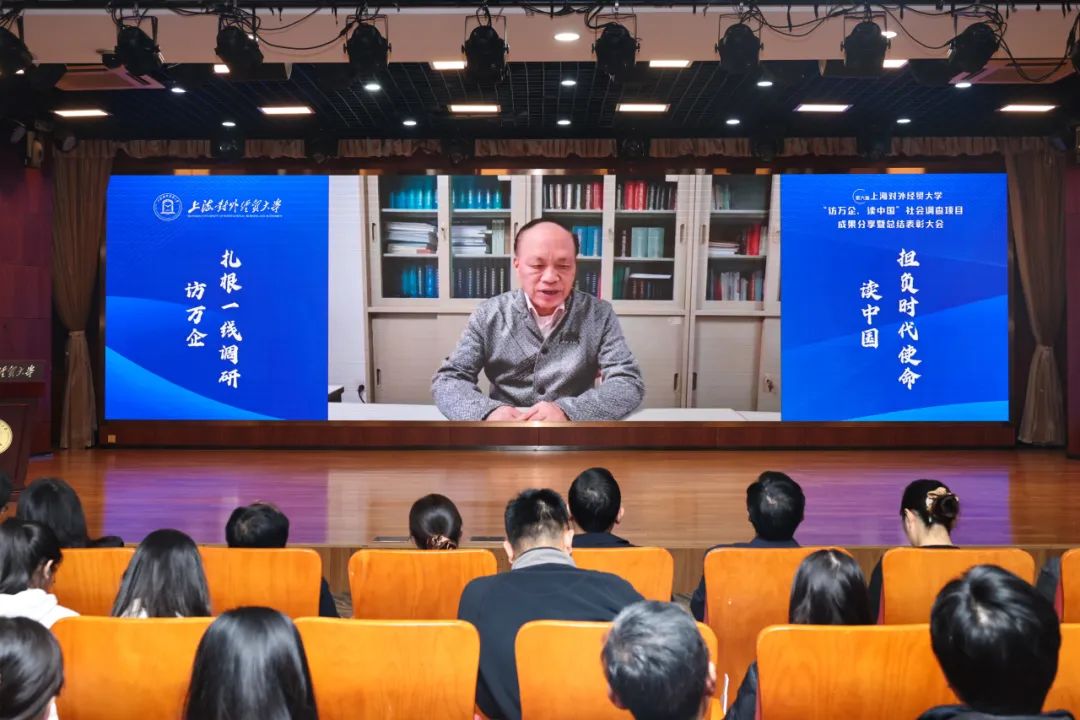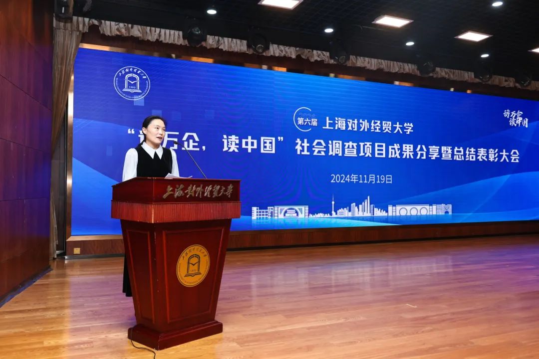 11月19日,上海对外经贸大学2024年“访万企,读中国”社会调查项目成果分享暨总结表彰大会在松江校区信息楼507报告厅顺利举行。上海对外经贸大学副校长徐永林,校党委常委、宣传部部长郭茜,“访万企,读中国”社会调查项目顾问、统计与信息学院原院长刘永辉,教务处处长朱建明,党委学(研)工部部长、学生处处长缪韵笛,统计与信息学院党委书记黄静,团委书记司徒力云,国际经贸创新与治理研究院副院长张海娜,各学院团组织负责人,项目师生代表及统计与信息学院大一新生共400余人出席。会议由统计与信息学院副院长王利娟主持。