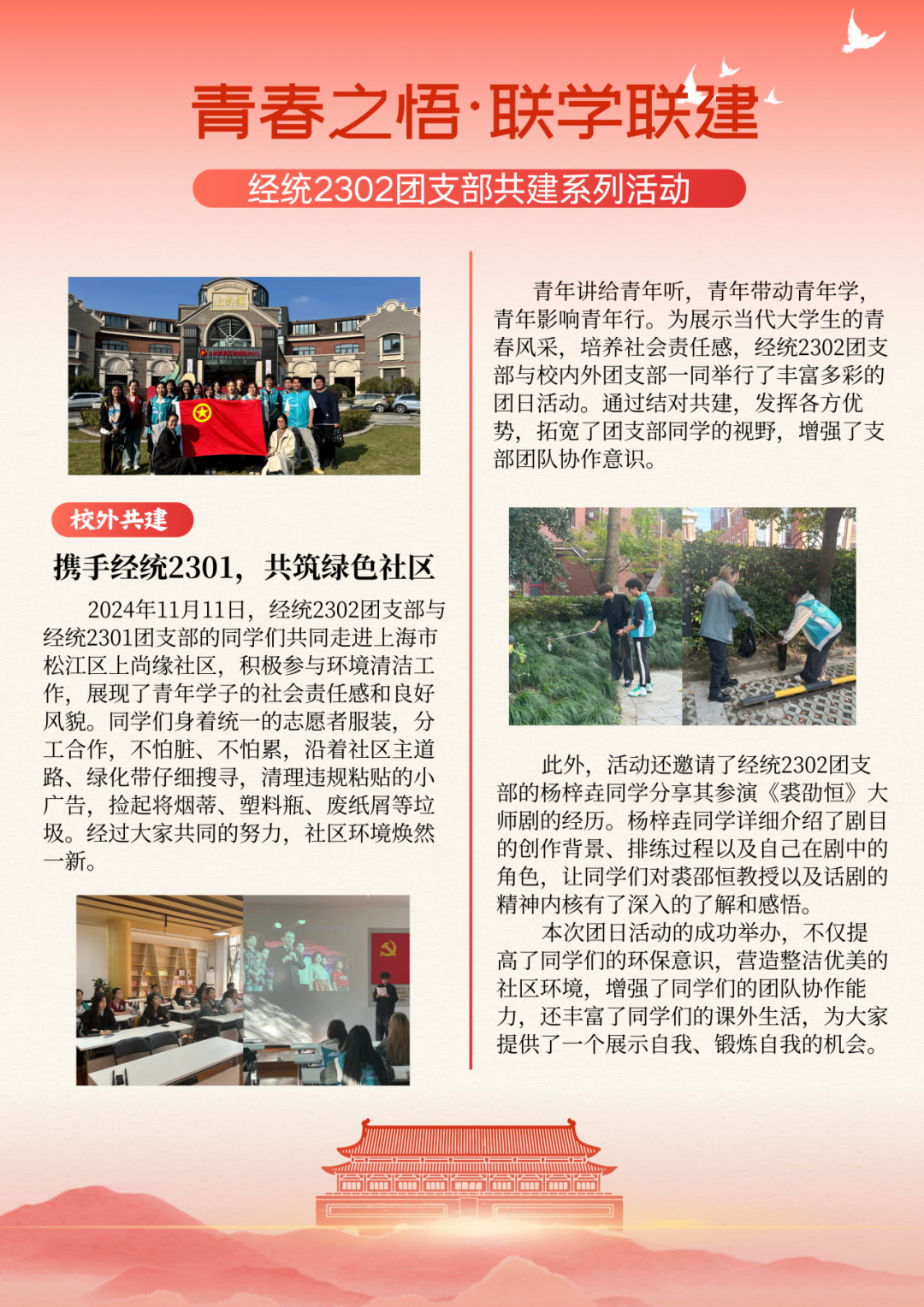 共建单位:经统2302团支部、经统2301团支部、松江区上尚缘社区支部。