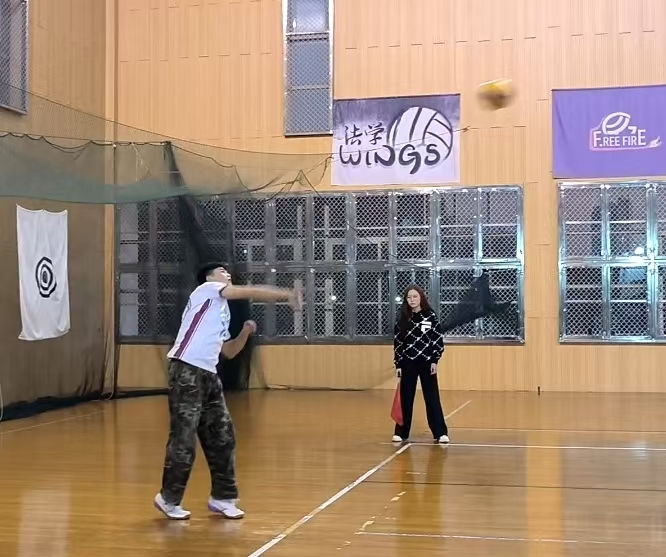 男双比赛中,我方派出的是赵旭东同学和王徐睿同学。本场比赛异常激烈,开场阶段,双方比分交替上升,我方选手通过默契配合和精准拦网多次得分。然而,进入中局后,对手的前后场轮转和杀球战术更为出色,占据了主动。尽管比分一度接近,我方选手在关键分的处理上稍显不足,以18:21告负,遗憾未能拿下比赛。虽然失利,他们的顽强拼搏和出色表现仍然令观众赞叹不已,为后续赛事积累了宝贵的经验。