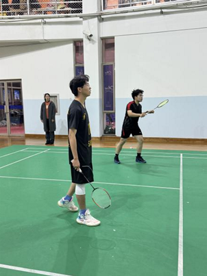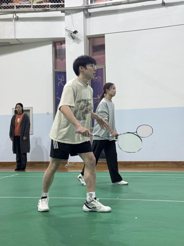 最后一场混双比赛,我方派出的是孙浩仁同学和余馨尔同学。我方组合以21:15的比分取得一场漂亮的胜利。比赛伊始,我方通过快速的攻防转换和流畅的战术配合牢牢掌控了局面。中局阶段,面对对手的反扑,他们凭借默契的轮转和精准的得分手段稳住了节奏。比赛末段,我方选手展现了强大的压制力,多次在网前抢得主动权,锁定胜局。这场胜利不仅完美展现了他们的实力,也为整场比赛的最终胜利画上了圆满的句号,令人振奋。