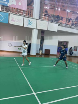 最后一场混双比赛,我方派出的是孙浩宸同学与叶子馨同学。比赛一开始,二人在场上配合默契,率先拿下了主动权,尽管对方实力强劲,对我方造成了不小的威胁,但我方依然保持着自己的节奏,凭借着精准战术,多次化解对方战术,并主动得分。在最后关键分阶段,果断得分,并由此锁定了本场胜利。本场比赛让我们看到了自身潜力所在,并提升了我方的信心。