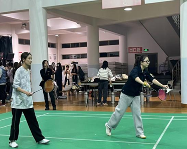 本场女子双打比赛,我方派出的是余馨尔同学与撒迅同学。作为统信学院经验丰富的老队员们,二人在赛场上稳健、从容,并拥有着扎实的基本功。比赛开局,对手凭借强劲实力抢占先机,但二人在场上配合默契,努力控制节奏,紧追不舍。我方试图以精准网前技术与灵活跑动控制局面,奈何对方紧抓我方失误,展开进攻。最终以17:21的大比分惜败。比赛虽失利,但展现出了我方的拼搏精神。