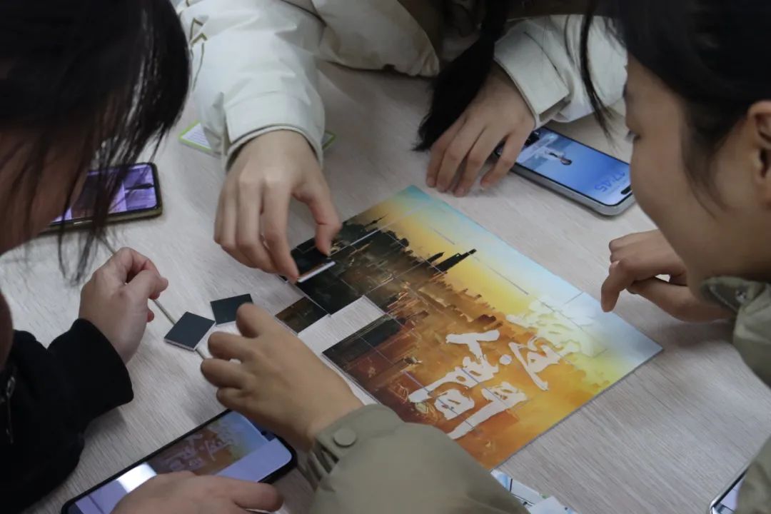 每个小组都沉浸在专注和谐的氛围中,为共同的目标发挥自己的优势,互相提供了满满的情绪价值。每一块拼图、每一次拼接,都蕴含着大家对美的独特理解,美无处不在,正是大家拥有能够发现美的眼睛,才能共同拼接出美好的风景。