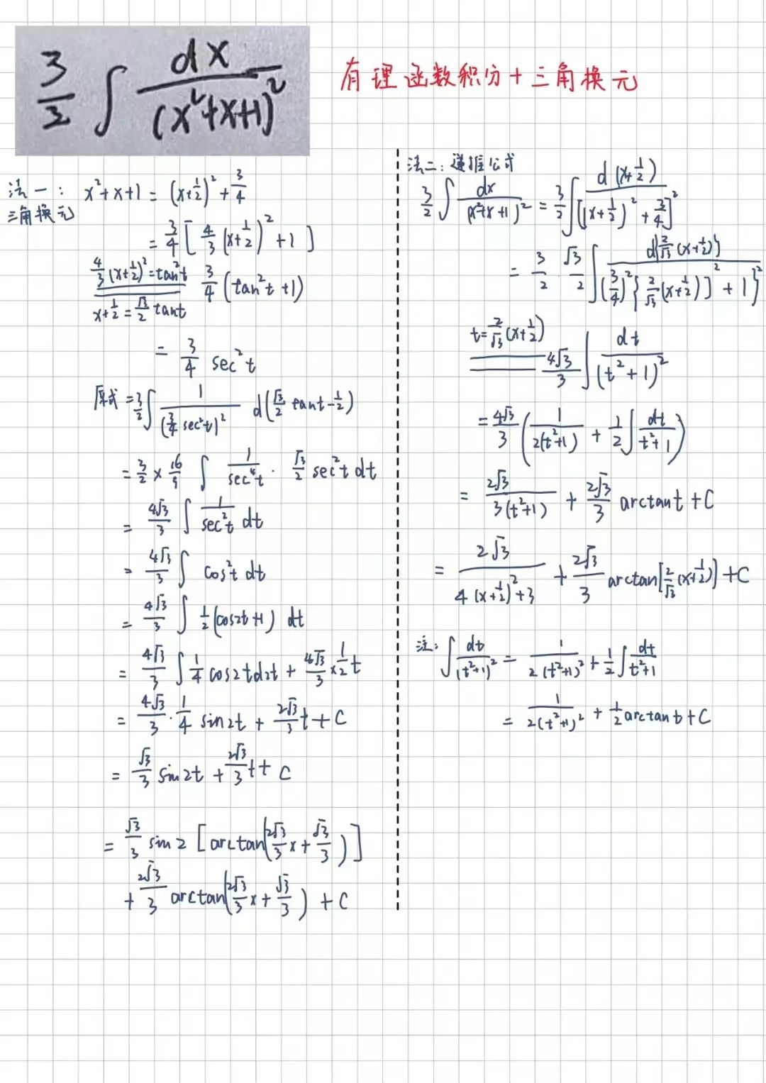 有理函数积分+三角换元