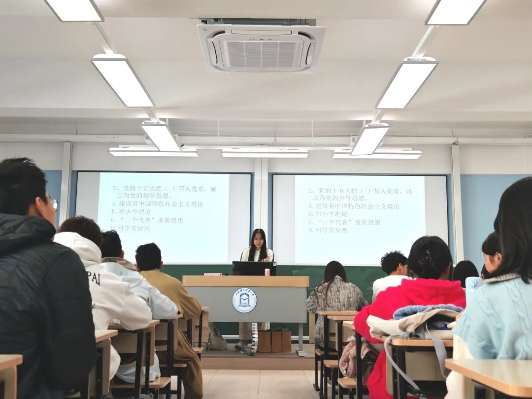 党团知识竞赛由石蕊婷主持,赛前将全体学员分为16个小组,竞赛设置必答题、抢答题和“红歌我知道”三个环节。各小组成员相互协作,踊跃参与答题。最终工作人员根据各小组所积累的得分总和,评出获奖小组并颁发精美礼品。