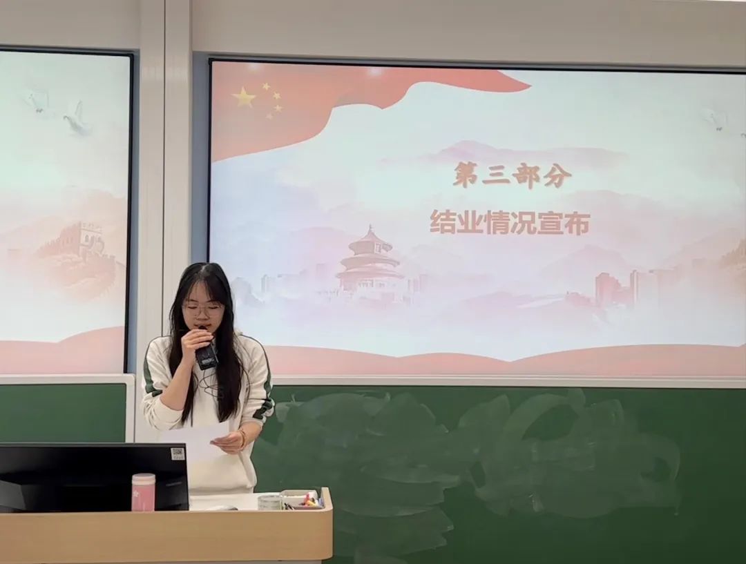 团委组织部副部长李静瑜宣布结业情况,总结第九届“雏鹰计划”的活动开展情况。她提到,无论是最初的开幕式、团课讲座、泰晤士团建活动,还是新闻采访、摄影剪辑专题等培训课程,都干货满满,希望学员未来继续加强党团知识学习。