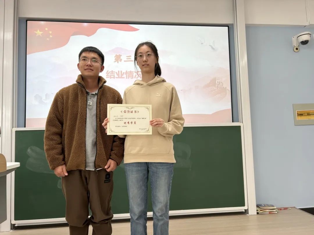 团委书记岳怡寒总结致辞,她首先向圆满完成学业的学员致以热烈的祝贺,并向辛勤组织培训的工作人员表达诚挚的谢意。她指出,青年一代应与时俱进,与新时代的步伐保持一致,把不懈奋斗作为青春最亮丽的底色,致力于提高个人的思想理论素养,锤炼出精湛的技能,全面提升综合素质,从而为个人的成长进步以及团学组织的蓬勃发展做出实质性的贡献,真正成长为值得信赖、能够担当重任的团学骨干。