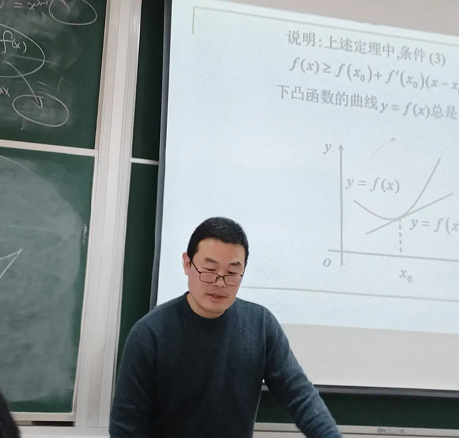 (刘欣老师在讲座中讲解微分学相关竞赛内容)
