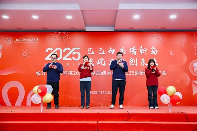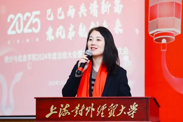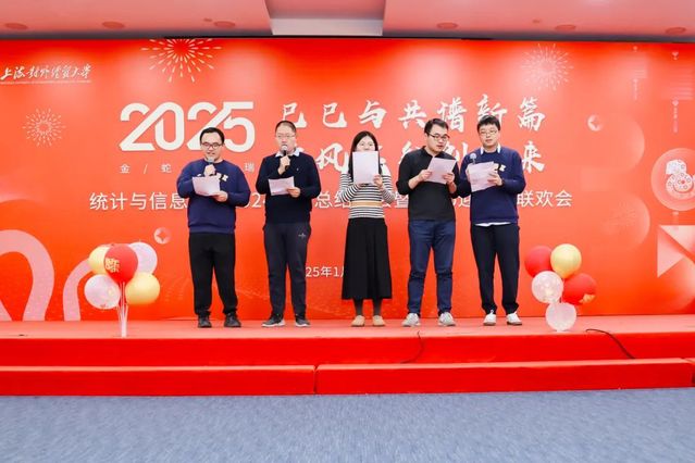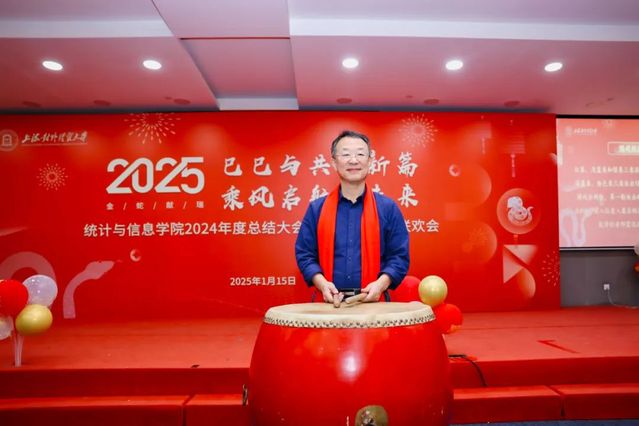 1月15日下午,统计与信息学院在信息楼 526 会议室举行“灵蛇舞动,喜迎新春” 2024年学院总结大会暨2025年迎新春联欢会。学院全体教职工齐聚一堂,共同回顾过去一年的奋斗历程,展望新的一年,喜迎新春佳节。总结大会由学院党委书记黄静主持。