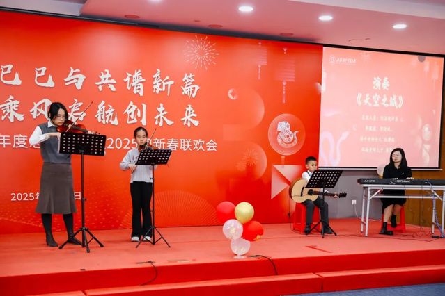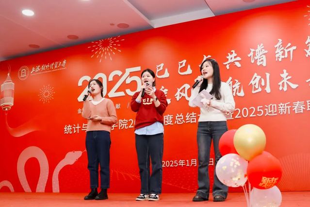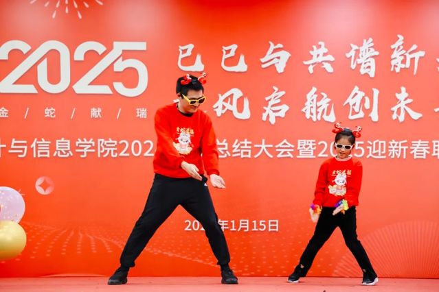 新入职的老师们率先登场,带来精彩的《歌曲串烧》表演,展现了新教师的青春风采,为联欢会注入了新春的喜悦与活力;信息管理系和数据科学系教师带来《舞蹈串烧》表演,用优美的舞姿诠释了对生活的热爱和对工作的热情,将现场气氛推向了新的高潮;应用数学系教师带来歌曲表演《你曾是少年》,熟悉的旋律响起,唤起了在场老师们对青春的回忆,激励大家永保少年心气,赤诚如初,勇敢面对未来的挑战;经济统计系教师携手教师子女,共同演奏曲目《天空之城》,悠扬的旋律让大家感受到了音乐的魅力和梦想的力量;计算机与人工智能系教师带来歌曲《走在乡间的小路上》,欢快的歌声让大家感受到了大自然的美好,也鼓励着老师们在工作中能够找到生活的乐趣,享受每一个平凡而美好的瞬间;最后,数理统计系教师带来诗朗诵《年终总结》,他们用幽默诙谐的语言,回顾了过去一年学院的点点滴滴,让大家在欢笑中感受到了学院的发展与进步,也对新的一年做出了展望与憧憬。