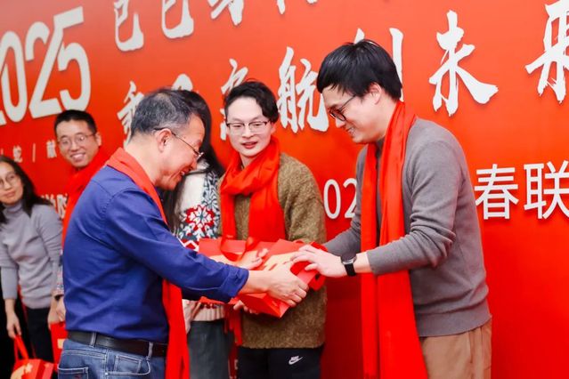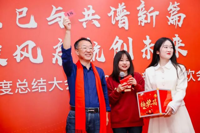 在联欢会的尾声,学院领导们纷纷为教职工送上新年祝福。张日权院长为蛇年本命年的教职工赠送了纪念品,祝福他们在新的一年金蛇迎福,蛇运亨通,蛇年大吉。黄静书记表达了对老师们的感谢和祝福,对学院事业发展的美好愿景,希望全体教职工高扬理想,以奋斗、以激情、以团结、以担当,在2025年浓墨重彩书写崭新篇章!