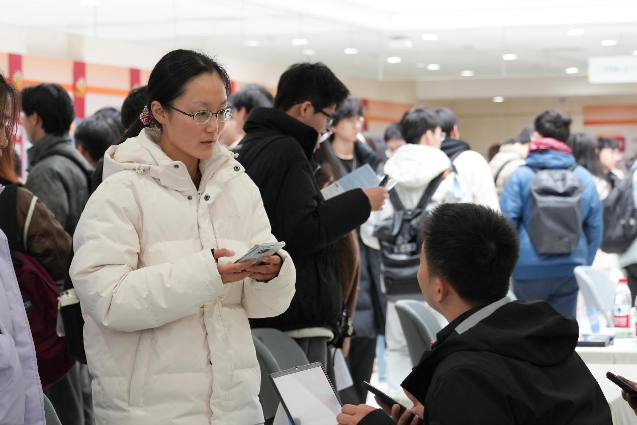 招聘会现场秩序良好,气氛活跃。应届毕业生带着认真准备的简历,与招聘负责人进行沟通,全面了解企业背景和岗位细节。企业工作人员专业解答各类疑问,详细介绍工作内容和发展前景。现场还吸引了很多低年级本科生和研究生,他们通过与企业交流,不仅了解到行业最新动向和用人要求,也在寻找实习机会的过程中,对自己的职业规划有了更清晰的认识。