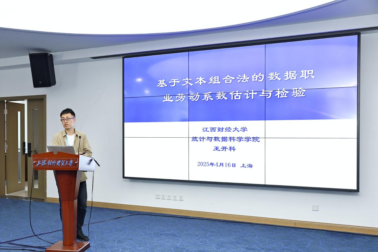 来自澳大利亚麦考瑞大学的金卓教授、山东大学的田沛佩研究员、上海对外经贸大学的吴开尧教授、司继春副教授、李佩瑾副教授、刘弘之老师也分别围绕“Textual Analysis of Insurance Claims with Large Language Models”“消费可持续评估与管理”“绿色技术创新对中国制造业全球价值链地位的影响” “教育公平、劳动力结构与企业高质量发展”“新质生产力统计测度与政策效应仿真模拟:基于多源空间大数据与ABM的研究”“量子计算中的统计学问题”等主题分享了他们的研究成果。