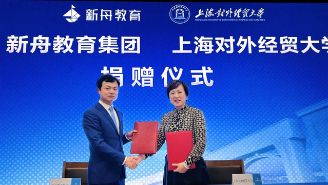 4月17日,新舟教育集团向上海对外经贸大学捐赠100万元公益基金,融合校企特色与资源优势,协同培育创新人才。捐赠仪式在上海对外经贸大学古北校区综合楼510室举行。新舟教育联合创始人张培携核心管理层,上海对外经贸大学校友工作联络处处长晏琼、合作交流处处长赵静、统计与信息学院党委书记黄静等出席捐赠仪式,仪式由教育发展基金会办公室主任叶茹蕙主持。