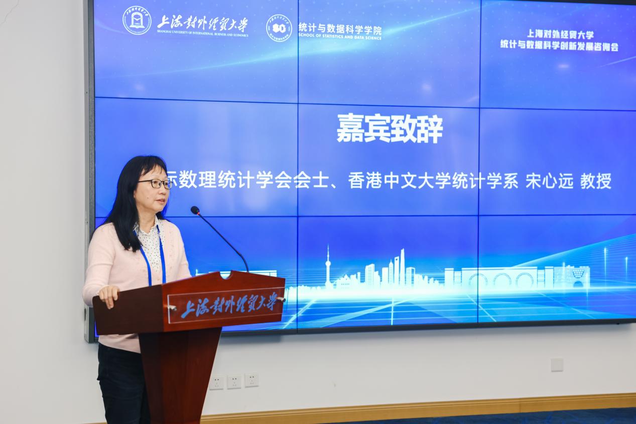 为学习贯彻习近平总书记考察上海重要讲话,顺应新时代学科交叉融合趋势,紧密对接服务国家战略急需,5月24日上海对外经贸大学统计与数据科学创新发展咨询会在古北校区成功举办。来自密苏里大学、清华大学、北京大学、浙江大学、上海交通大学、复旦大学、香港理工大学、香港中文大学、中国科学技术大学、西安交通大学、中国人民大学、武汉大学、哈尔滨工业大学、北京师范大学、厦门大学、华东师范大学、中央财经大学、西南财经大学、中南财经政法大学等国内外50余所高校的70余位专家学者出席。上海对外经贸大学副校长徐永林、研究生院常务副院长郝程程、发展规划处副处长(主持工作)赵倩、统计与数据科学学院全体领导班子及学院教师代表参加会议。开幕式由统计与数据科学学院党委书记黄静主持。