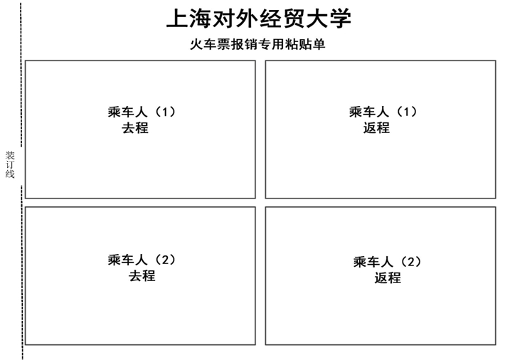 报销纸质火车票的,须将火车票平铺粘贴在《上海对外经贸大学火车票报销专用粘贴单》(附件四)上。
