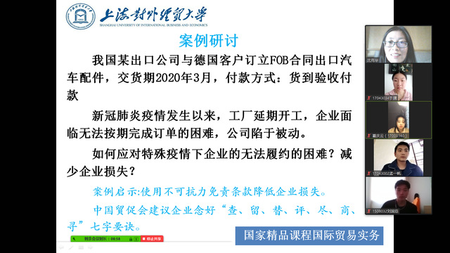3月3日上午,在《国际贸易实务》和《不动产评估》课程在线教学的直播间里,来了一位特别的观众,校长汪荣明进入在线直播间,与身在全国各地的贸大学子相聚云课堂,共听一堂课。《国际贸易实务》课程作为在线开放课程已在中国大学MOOC平台开课4期,主讲教师沈克华每期直播授课4-6次,在线教学经验丰富,今天的教学以新冠疫情对国际贸易的影响开题,互动研讨外贸企业的应对措施和解决方案,并引导学生强化国际经贸人才应有的责任与担当。讲授《不动产评估》课程的唐旭君老师首次开设在线直播但毫不怯场,娴熟的教学内容,娓娓道来的讲授让好久未见的同学们倍感亲切,结合专业特色用视频、图片展示的毕业生成长经历,使学生加强资产评估从业者的社会责任感和职业操守认知,精心设计的教学活动中不时穿插随堂调查、互动讨论,让同学们感受面对面的教学氛围,就像回到学校和老师身边一般自然。