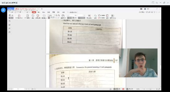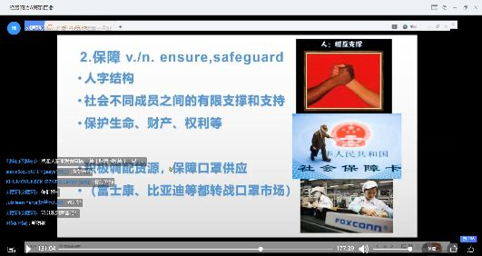 倪中连老师讲述了她如何开展《经贸口语》课程在线教学。她的课程有21位留学生,分布在世界各地,统一时间开展在线教学存在困难。同时口语课大班开展在线教学本身也有较高的难度,因此,倪中连老师按照时区相近的原则把学生分成4个小组,分别建立微信小组群。由于留学生所在国家网络环境的差异,为了保证每个学生都有公平学习的机会,倪老师采用录播方式,把生词讲解和课文讲解分别录制成视频,再上传到教学平台,让学生观看学习。