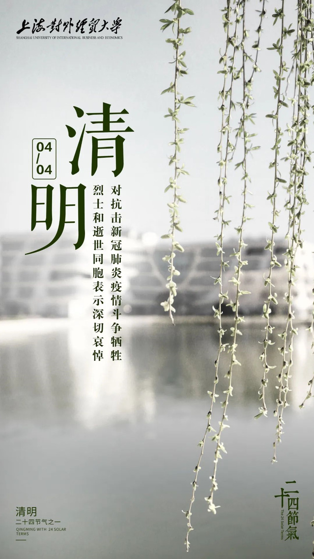 “逝者已矣,生者如斯。”今天,我们度过了一个特殊的清明节。上午十点,鸣笛声与防空警报在城市和乡村每一个角落的上空响起,上经贸大也降下半旗,表达对抗击新冠肺炎疫情斗争中,牺牲烈士和逝世同胞的深切哀悼。