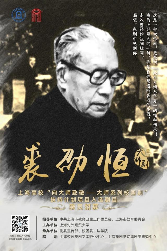 上海对外经贸大学大师剧《裘劭恒》演员招募