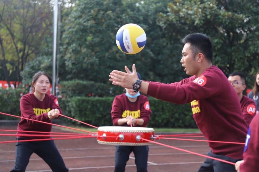 本次团队拓展活动设有一鼓作气、陆上冰壶、绳舞飞扬、环环相扣以及力拔山河五个项目。活动中,辅导员们齐心协力、顽强拼搏,相互加油助威,充分展现了我校辅导员队伍昂扬向上的精神风貌和精诚团结的团队精神。