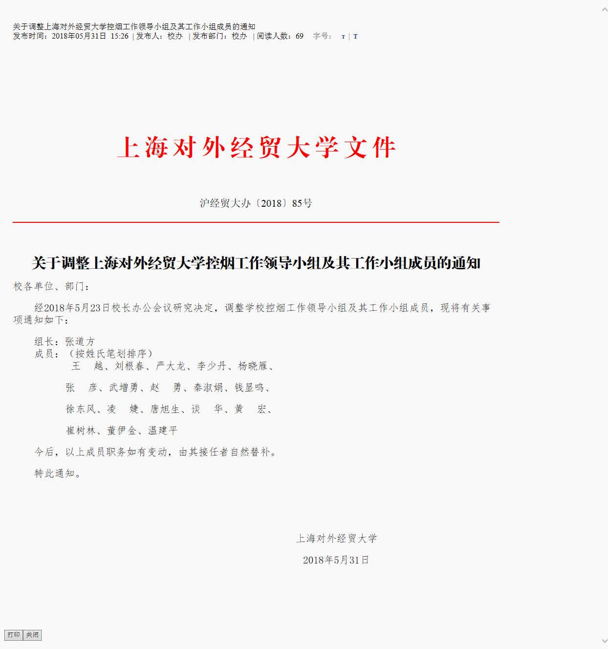 11、沪经贸大办(2018)85号-关于调整控烟工作领导小组及其工作小组的通知(2021年度继续执行)