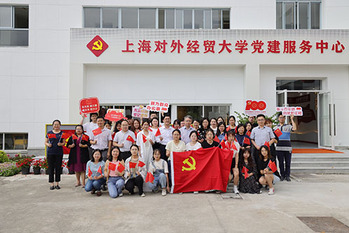 为提升学校基层党建质量,庆祝建党100周年,学校2021年6月建成使用党建服务中心。该中心作为上海市教卫工作党委系统示范性党建服务中心,新时代上海高校党建创新实践分基地,以“红色引擎助力贸易强国”为主题,展示学校党建引领贸易强国建设的探索与实践。学校党建服务中心坚持“引领、服务、创新、育人”的建设理念,突出“党建+思政”“理论+实践”“特色+文化”“示范+共享”,建设一台(红船接待台)、一站(红星服务站)、一馆(红炉组织生活馆)、一室(红领工作室)、三个主题展(党史教育主题展、贸易强国主题展、党建风采主题展)和四个功能区(入党宣誓区、党建互动区、理论阅读区、红色广场路演区),将“一中心一基地”一体打造成为“党建服务阵地+创新实践基地+红色育人高地”。