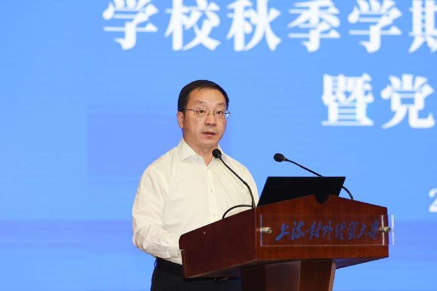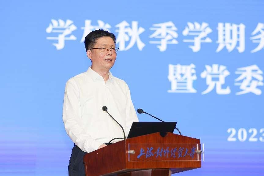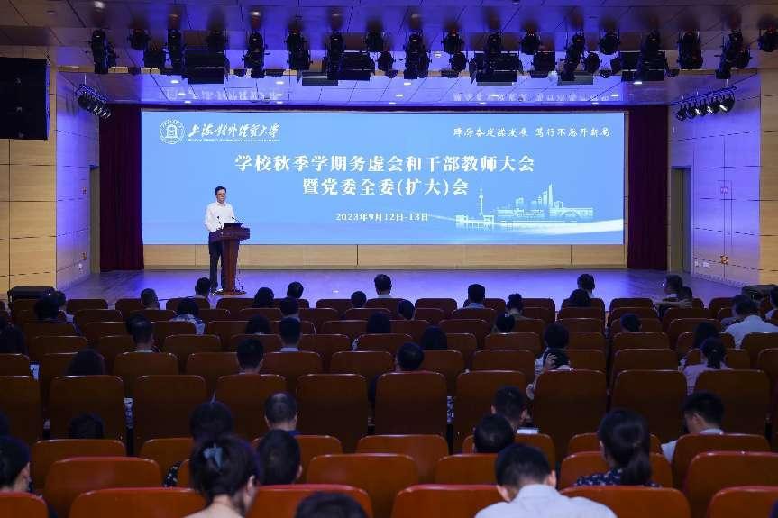 9月12-13日,学校2023年秋季学期务虚会和干部教师大会暨党委全委(扩大)会在古北校区综合楼506报告厅召开。本次会议以习近平新时代中国特色社会主义思想为指导,以“踔厉奋发谋发展,笃行不怠开新局”为主题,围绕学校对外战略合作交流、国际组织人才培养等重要领域,通过主旨报告、分组研讨等形式开展学习和交流。学校领导班子成员,9全体党委委员、纪委委员、中层领导人员,部分党代会代表、教代会代表,民主党派、无党派人士、统战团体代表,党支部书记代表、科研骨干代表、青年教师代表等出席会议。校党委书记殷耀作动员讲话,校长汪荣明作总结讲话。校党委副书记、副校长祁明,党委副书记、纪委书记章益国分别作主旨报告,校党委副书记吴毅、副校长徐永林分别主持会议相关环节并对主旨报告作点评。