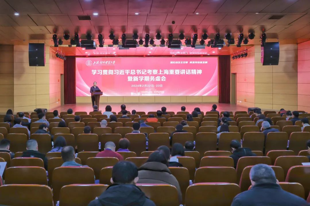 2月22至23日,学校在古北校区综合楼506会议室召开学习贯彻习近平总书记考察上海重要讲话精神培训暨新学期务虚会。本次会议的主题是“强化综改主引擎 聚焦特色谋发展”,旨在深入学习贯彻落实党的二十大精神、习近平总书记关于教育的重要论述、习近平总书记考察上海重要讲话精神,紧紧围绕全面深化教育综合改革,聚焦学科专业优化调整、资源服务保障能级提升等重要内容,集思广益、献计献策,向改革要动力、向创新要活力,切实推动学校事业发展再上新台阶。全体校领导,全体党委委员、纪委委员、中层领导人员,部分党代会代表、教代会代表,民主党派、无党派人士、统战团体代表,党支部书记代表、科研骨干代表、青年教师代表等参加会议。校党委书记祁明作动员讲话,校长汪荣明作总结讲话。校党委副书记吴毅,校党委副书记、纪委书记章益国,副校长徐永林分别主持会议相关环节并对主旨报告作点评。