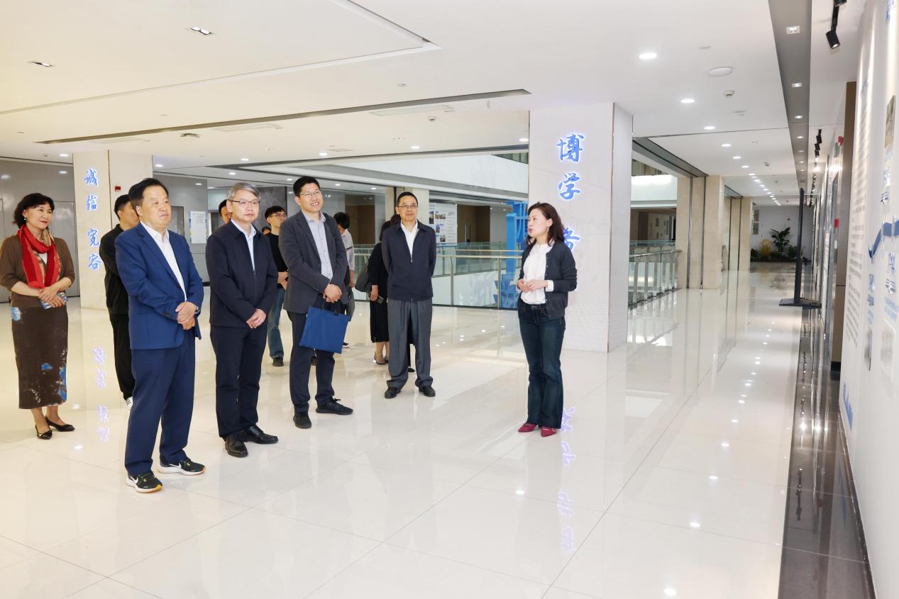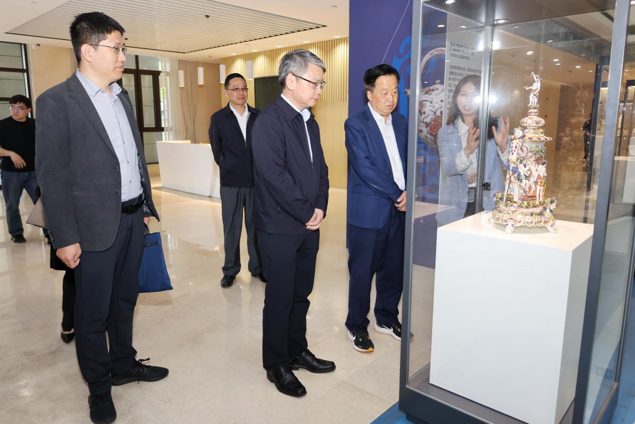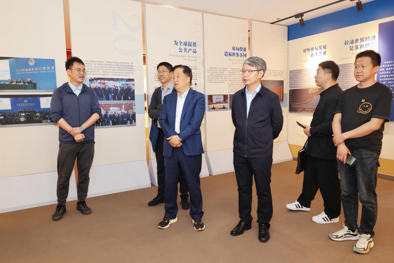 祁明对调研组一行来访表示欢迎和感谢并陪同调研组一行参观了博物馆首展、国际经贸创新与治理研究院暨决策咨询研究基地以及WTO亚太培训中心,相关负责人和老师引导讲解。