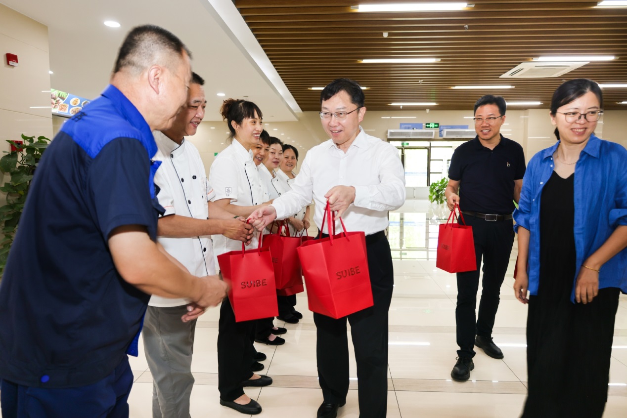 近期,上海持续高温,校党委书记祁明、校长汪荣明分别带队,在松江和古北校区进行走访,亲切慰问了高温下坚守一线的教职员工和暑期留校学生代表,并送去防暑降温慰问品。