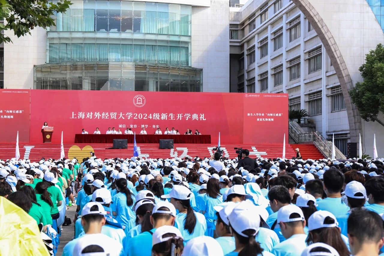 夏意未央,霞叶染秋。9月13日上午,上海对外经贸大学2024级新生开学典礼在松江校区南广场隆重举行。校党委书记祁明,校长汪荣明,校党委副书记、纪委书记章益国,副校长徐永林以及学校党政部门、各学院负责人和全体2024级新生出席典礼,广大师生、家长及亲友通过网络平台同步在线观礼。典礼由校党委常委、统战部部长许继亮主持。