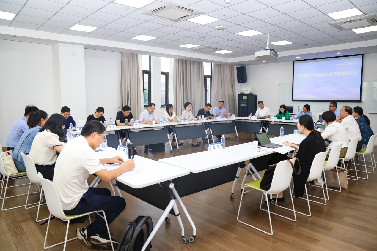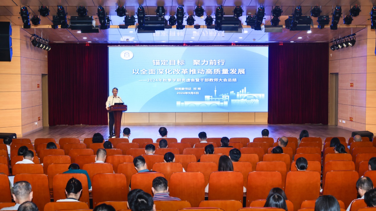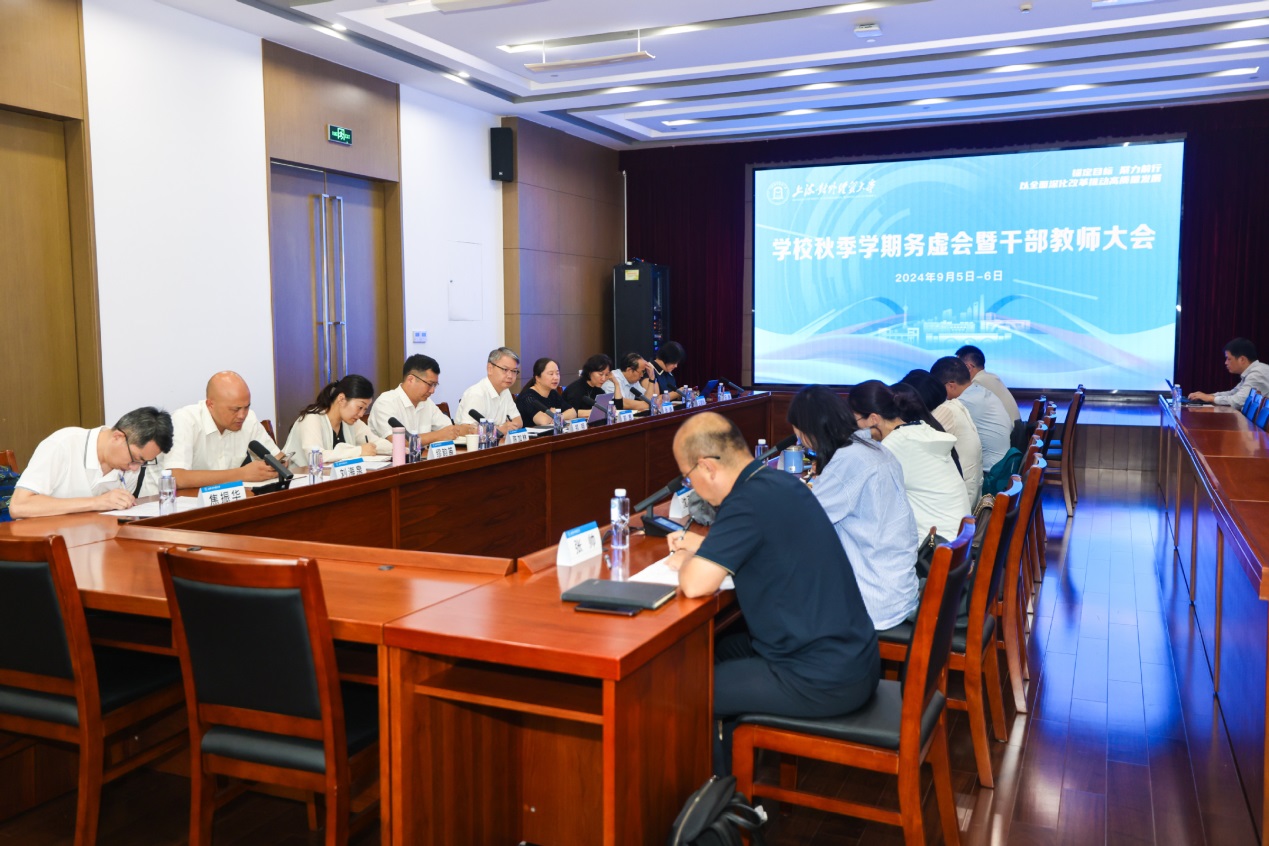 9月5日至6日,学校在古北校区综合楼506会议室召开2024年秋季学期务虚会暨干部教师大会。本次会议的主题是“锚定目标、聚力前行,以全面深化改革推动高质量发展”,旨在深入学习贯彻党的二十届三中全会精神,聚焦学科专业优化调整、人才培养能级提升等重要内容共同学习、交流研讨。全体校领导,中层领导人员,部分党代会代表、教代会代表,民主党派、无党派人士、统战团体代表,党支部书记代表、科研骨干代表、青年教师代表等参加会议。校党委书记祁明作总结讲话,校长汪荣明作动员讲话。