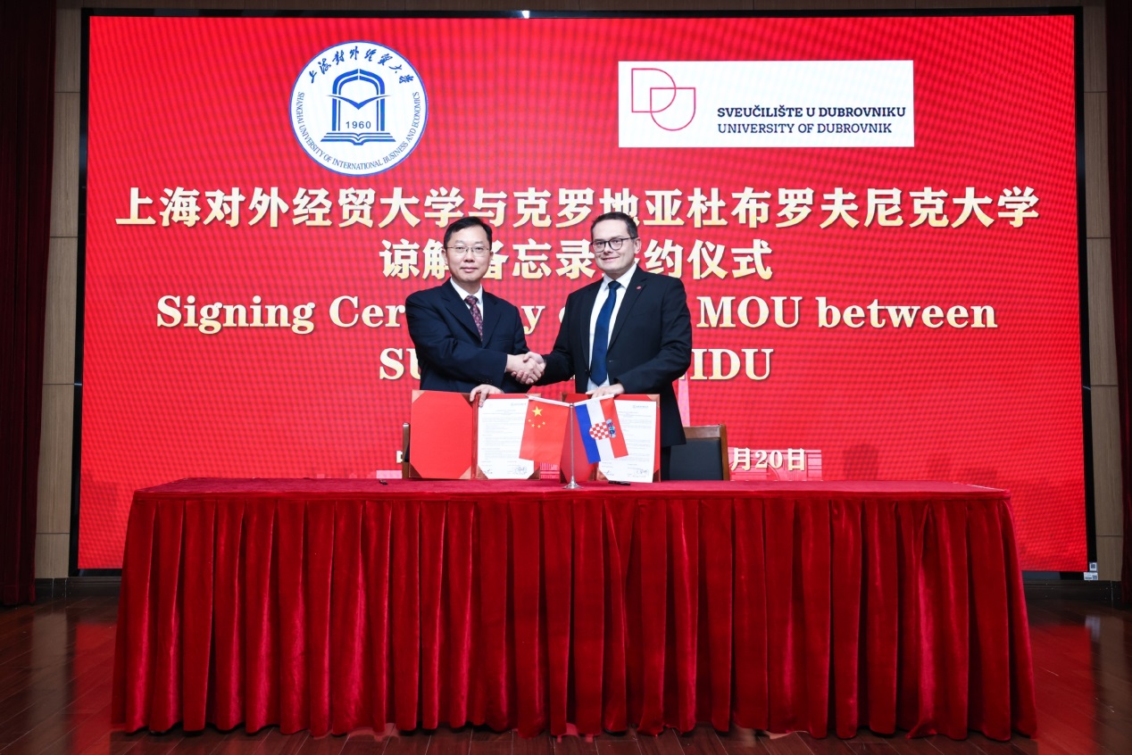 汪荣明回顾了去年11月率团访问萨格勒布大学和杜布罗夫尼克大学以及今年4月克罗地亚校长访华团走访我校的愉快经历,认为此次上海对外经贸大学与杜布罗夫尼克大学正式建立合作伙伴关系将开启两校合作的新篇章。在两校的共同努力下,双方的合作必定结出丰硕的果实,为促进中克教育合作与交流、增进民间友好作出积极贡献。