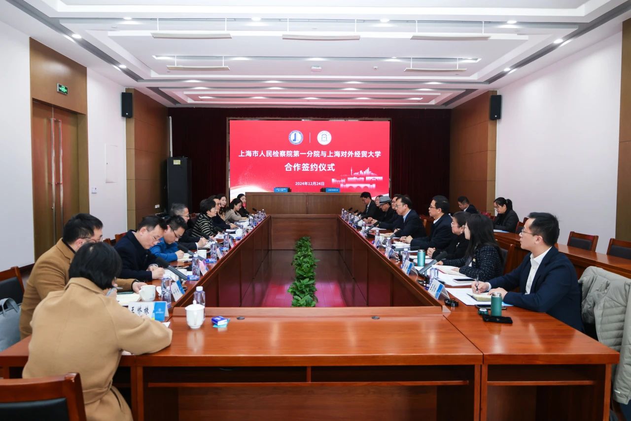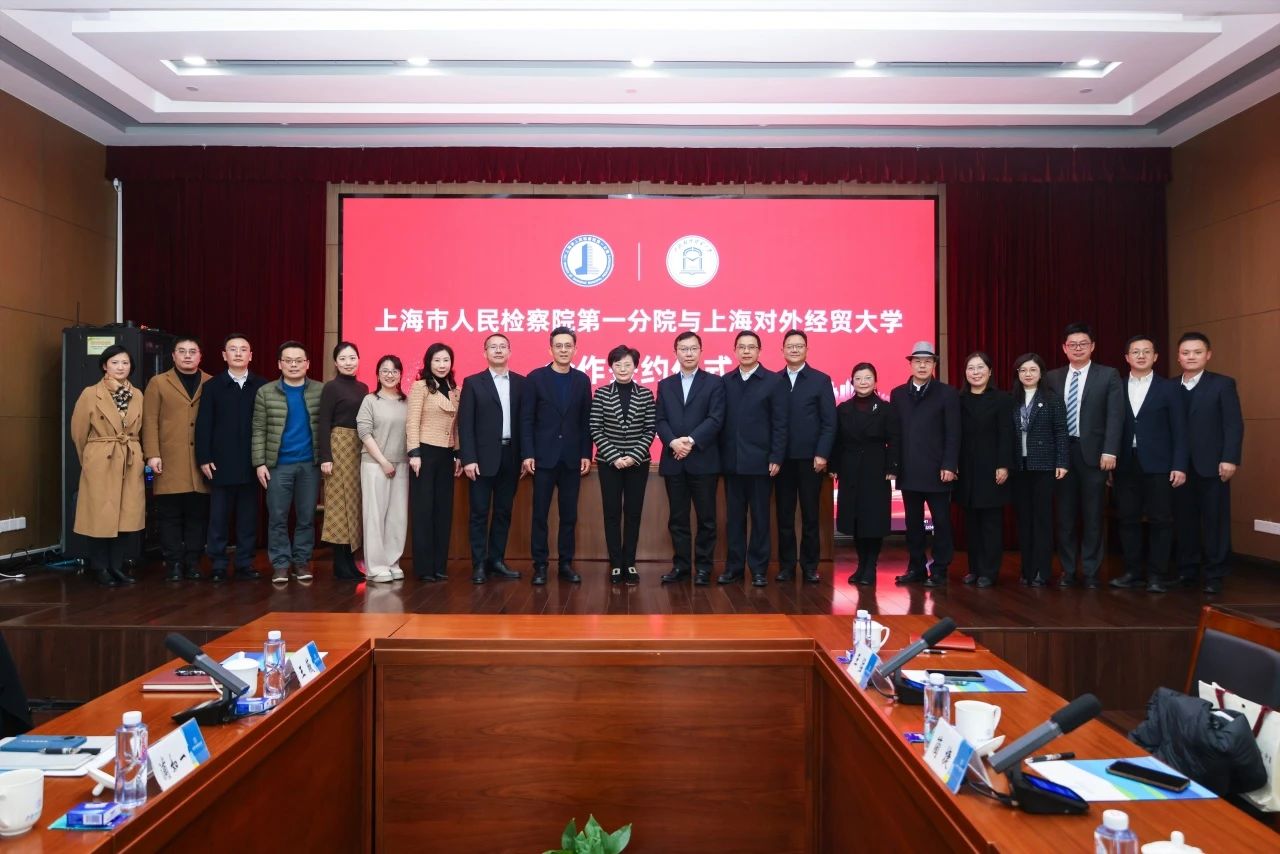 12月24日上午,上海市人民检察院第一分院与上海对外经贸大学战略合作签约仪式在古北校区举行。上海市人民检察院第一分院党组书记、检察长陈思群,党组成员、副检察长殷勇忠,党组成员、政治部主任钱焰青,上海对外经贸大学校长汪荣明,副校长徐永林,以及双方相关单位负责人出席仪式。签约仪式由徐永林主持。