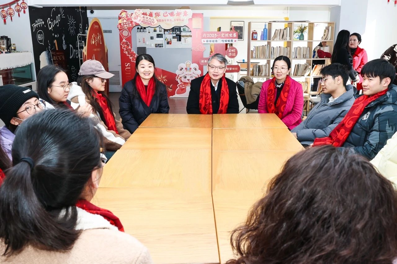 在2025年新春佳节即将到来之际,校党委书记祁明,校长汪荣明,校党委副书记、副校长沈艺分别在松江校区、古北校区走访慰问仍在坚守岗位的教职员工以及留校学生。相关部门负责同志参加慰问。