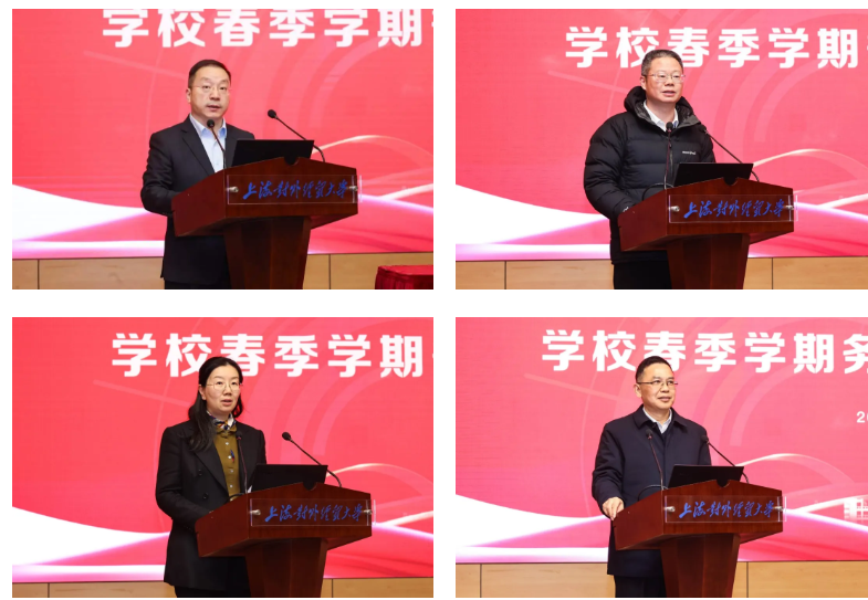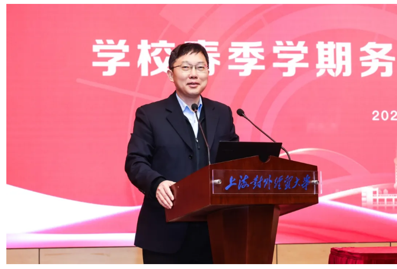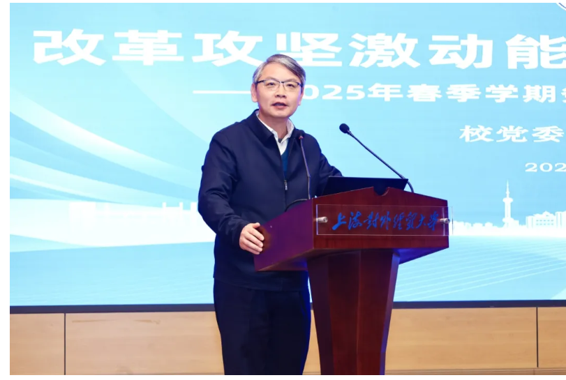 汪荣明在动员讲话中首先代表学校对广大干部教师致以新春慰问和祝福,并结合此次会议召开的背景和意义,以及未来一段时间学校的发展重点,聚焦全面深化综合改革,从学科专业优化调整、人工智能全面赋能、产教融合加速推动、治理效能提升等方面作交流。他表示,学校要深入学习贯彻全国教育大会精神和上海教育大会精神,对标对表《教育强国建设规划纲要(2024-2035年)》目标任务和上海深化教育综合改革“一个《意见》+十大专项计划”部署要求,做好顶层设计,抓好综合改革各项任务落地落实。要紧密对接服务国家战略和上海发展急需,优化调整学科专业布局,一方面要继续强化国际组织后备人才、涉外法治人才、国际金融人才、区域国别人才等特定领域急需人才精准培养;另一方面要聚焦制度型开放、数字贸易规则重构、国际供应链韧性提升、企业出海等现实需求,开展具有全局性、突破性、引领性的决策咨询研究。他结合春晚机器人表演、DeepSeek广泛运用和《哪吒2》爆火等近期案例谈到,往往“方向比努力更重要”,坚持久久为功、坚持做到极致,就会带来意想不到的收获。人工智能的加速普及对高等教育的影响将是全方位和颠覆性的,必将对人才培养模式变革提供新的动能并带来严峻挑战。他强调,要建构适应人工智能发展与应用的教育体系,将人工智能广泛融入课程、教材和第三课堂,着力培养学生人机沟通交流能力,提升数字素养和技术运用能力。围绕学校内部治理体系完善与治理效能提升,他指出,关键要全面激发人的动力活力,深化人事人才制度改革,优化完善考核评价机制,把干部教师的个人发展与学校事业发展目标更好地结合起来。“只要方向确定好了就不怕路远”,他希望大家齐心协力、抢抓机遇、直面挑战,在2025年实现奋力一跳,为学校高质量事业发展交出一份满意的答卷。