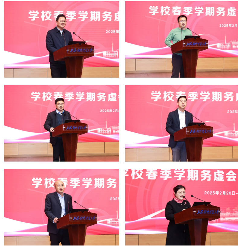 2月20日至21日,学校在古北校区综合楼506会议室召开2025年春季学期务虚会暨干部教师大会。本次会议以“实干创新谋发展,行稳致远开新局”为主题,突出“强服务能力、强贡献程度”导向,围绕《教育强国建设规划纲要(2024-2035)》等任务要求,对标对表上海市“一个《意见》+十大专项计划”,聚焦拉长特色长板、人才精准培养、深化综合改革等重要内容,共同学习、交流研讨。校领导,中层领导人员,部分党代会代表、教代会代表,民主党派、无党派人士、统战团体代表,党支部书记代表、科研骨干代表、青年教师代表等参加会议。校党委书记祁明作总结讲话,校长汪荣明作动员讲话。校党委副书记吴毅,校党委副书记、纪委书记章益国,校党委副书记、副校长沈艺,副校长徐永林分别主持会议相关环节,并对主旨报告作点评。
