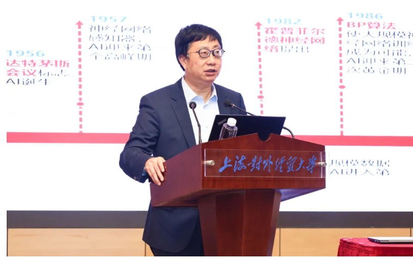 为进一步了解人工智能技术的前沿动态,推动人工智能赋能学校教学科研工作,学校邀请了上海交通大学人工智能研究院常务副院长杨小康教授作题为“人机共生时代的新质生产力:从大模型到具身智能”的主旨报告。他回顾了人工智能发展历程,全面阐释了人工智能作为新型的生产力,正在全方位地融入人类的工作和生活,人机共生的时代已经到来。他详细介绍了机器学习、计算机视觉、语音识别、自然语言处理、自主无人系统等五项人工智能的关键技术,并结合具体案例,强调了大模型、具身智能作为新质生产力,在多种场景下的广泛应用。他希望大家深刻理解人工智能对拓展新质生产力的内涵的重要意义,积极面对人机共生时代,包容、审慎地拥抱生成式人工智能,更好地满足高等教育的发展需求。