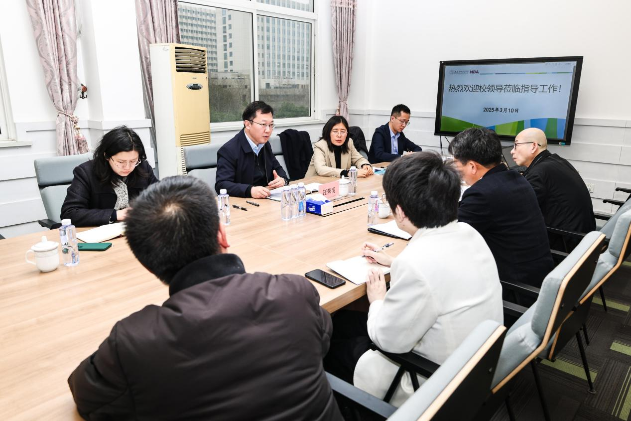校领导认真听取了吴国新关于MBA项目建设情况的汇报,积极肯定了MBA教育中心在特色项目建设和产教融合等方面取得的阶段性成果,以及项目团队实干创新的工作状态。