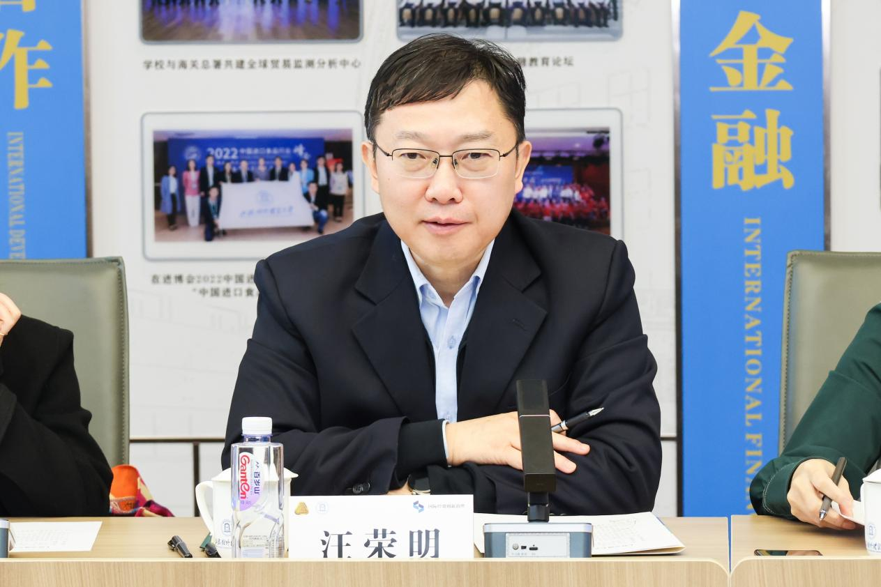 汪荣明对顾锋一行的来访表示热烈欢迎,并对市教卫工作党委长期以来对学校智库建设工作的大力支持表示感谢。他详细介绍了上海对外经贸大学在智库建设方面的进展和成果。汪荣明指出,学校锚定提升智库的学术影响力、社会影响力、决策影响力和国际影响力,秉承“开放、流动、联合、竞争”的原则,聚焦“五个国际”(国际贸易、国际投资、国际金融、国际发展合作、国际经贸治理),打造“1+5+N”的决策咨询矩阵,努力建设“想得起、靠得住、用得上”的高水平财经类智库。他期待能和上海交大智慧司法研究院这一智库开展深入的合作交流,努力打造沪上高校智库合作的“样板间”。