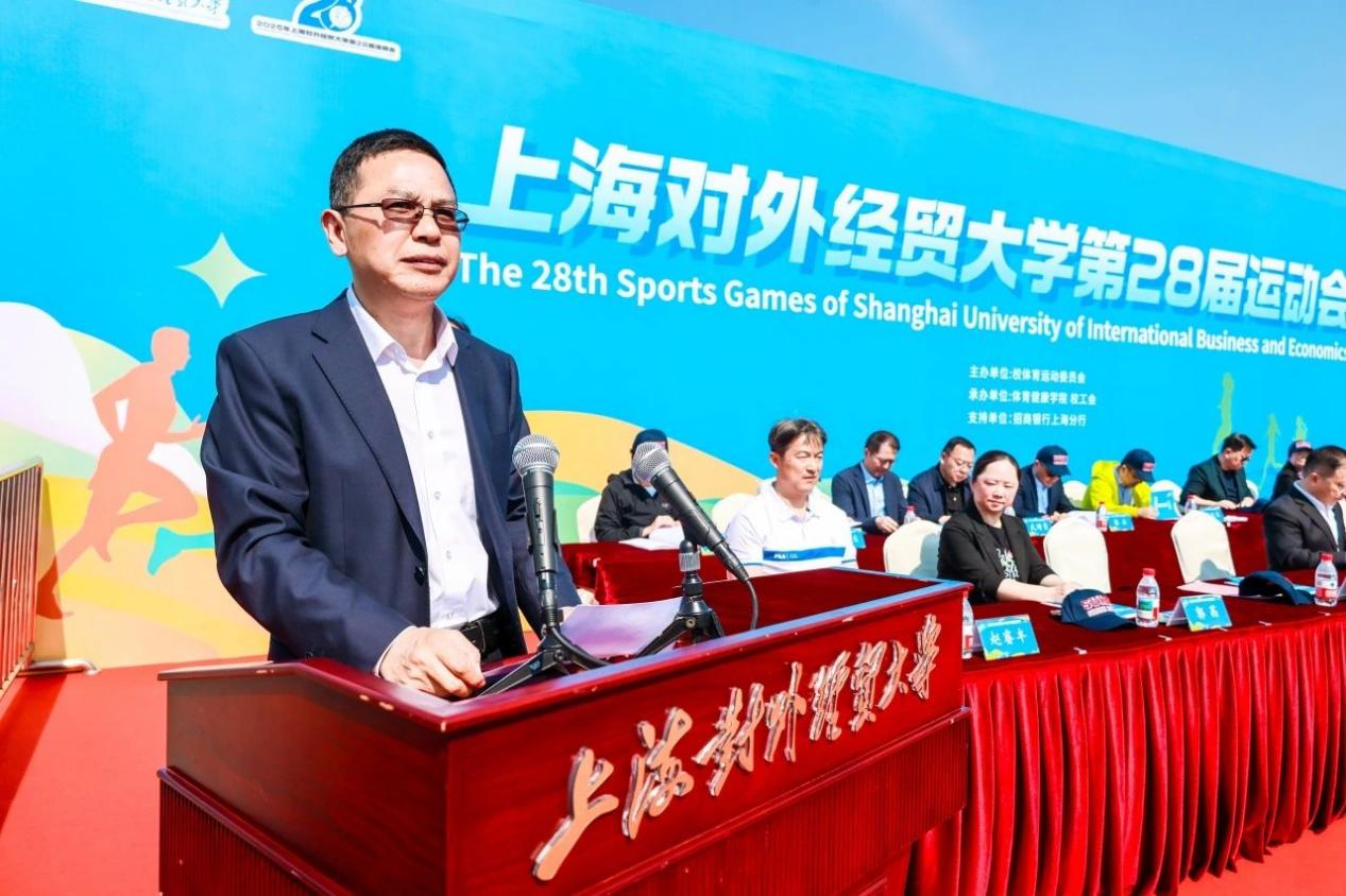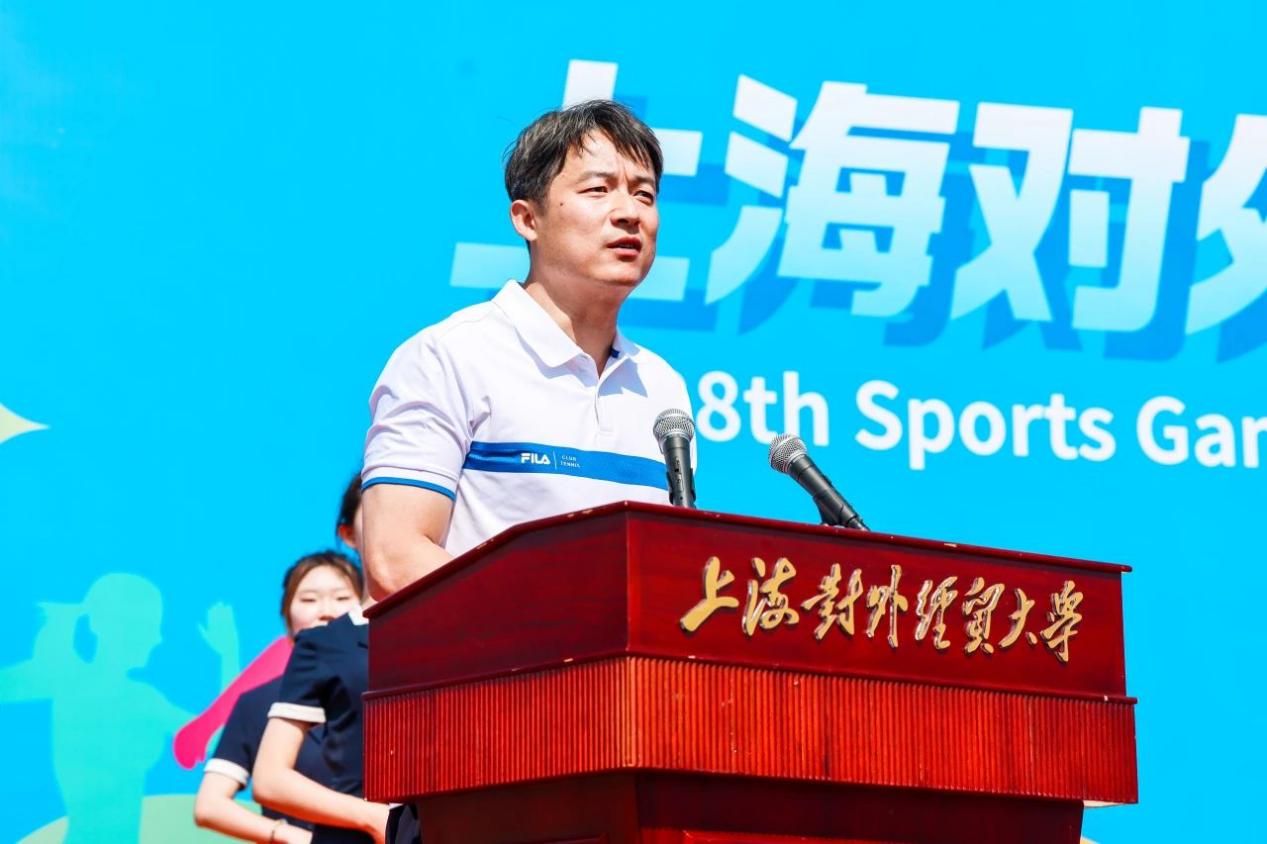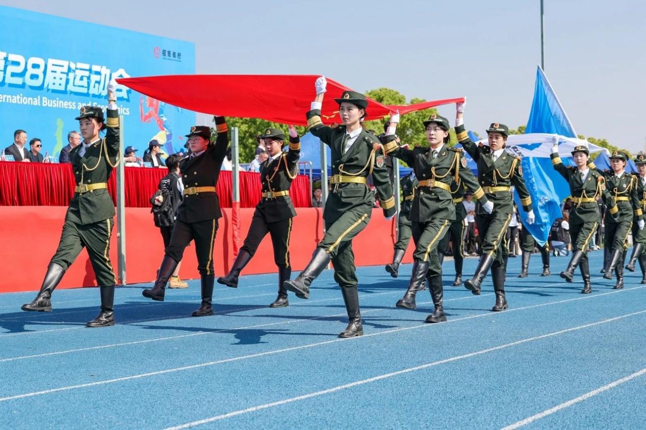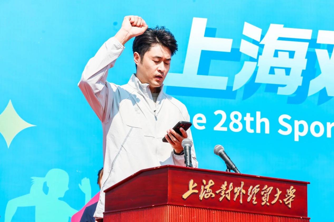 校党委书记祁明宣读《强体健心促进计划》,并宣布“上海对外经贸大学第 28 届运动会开幕”。一时间,红旗方阵挥旗成浪,鲜花方阵欢呼如潮,“生在红旗下,长在春风里”的表演将开幕式推向高潮。