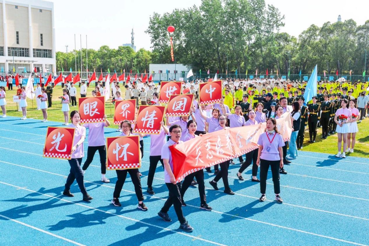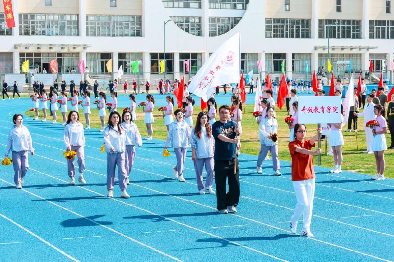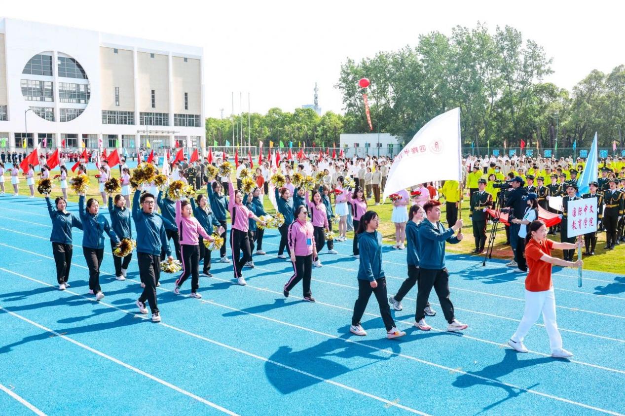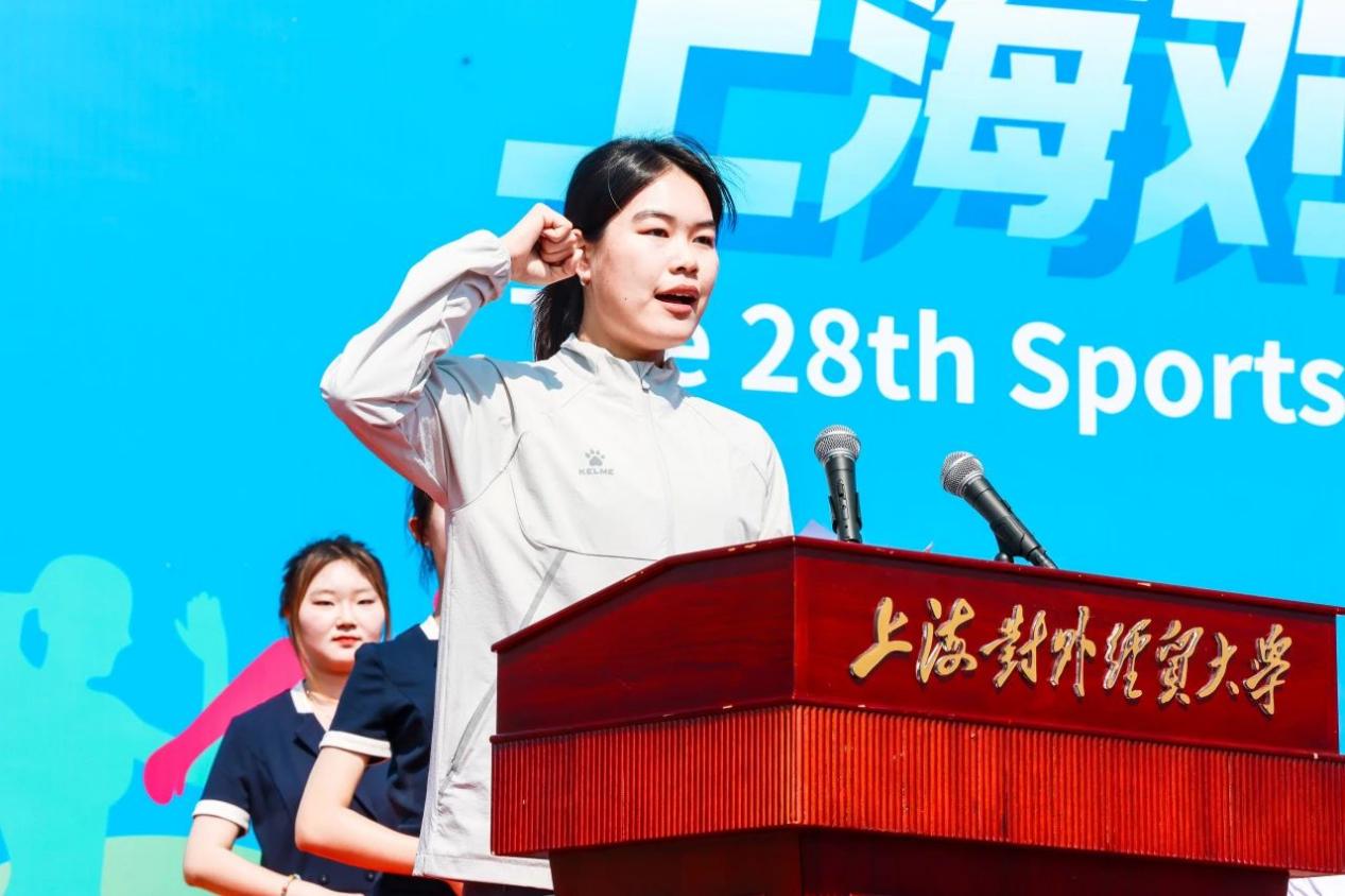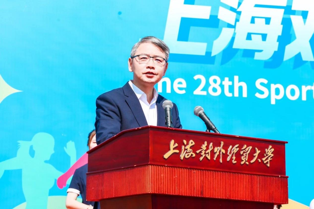 校党委书记祁明宣读《强体健心促进计划》,并宣布“上海对外经贸大学第 28 届运动会开幕”。一时间,红旗方阵挥旗成浪,鲜花方阵欢呼如潮,“生在红旗下,长在春风里”的表演将开幕式推向高潮。