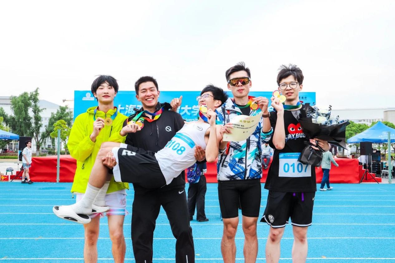国际经贸学院徐晓建同学在男子1500米比赛中,以4分12秒30的成绩大幅提升该项目校运会以及校田径最高纪录。在之后进行的男子3000米角逐中,徐晓建与队友周予乐,又双双打破男子3000米校运会以及校田径最高纪录,成绩分别为9分32秒19、10分04秒63。同一学院两人三次打破校田径最高纪录,成为本届校运会的一大亮点。