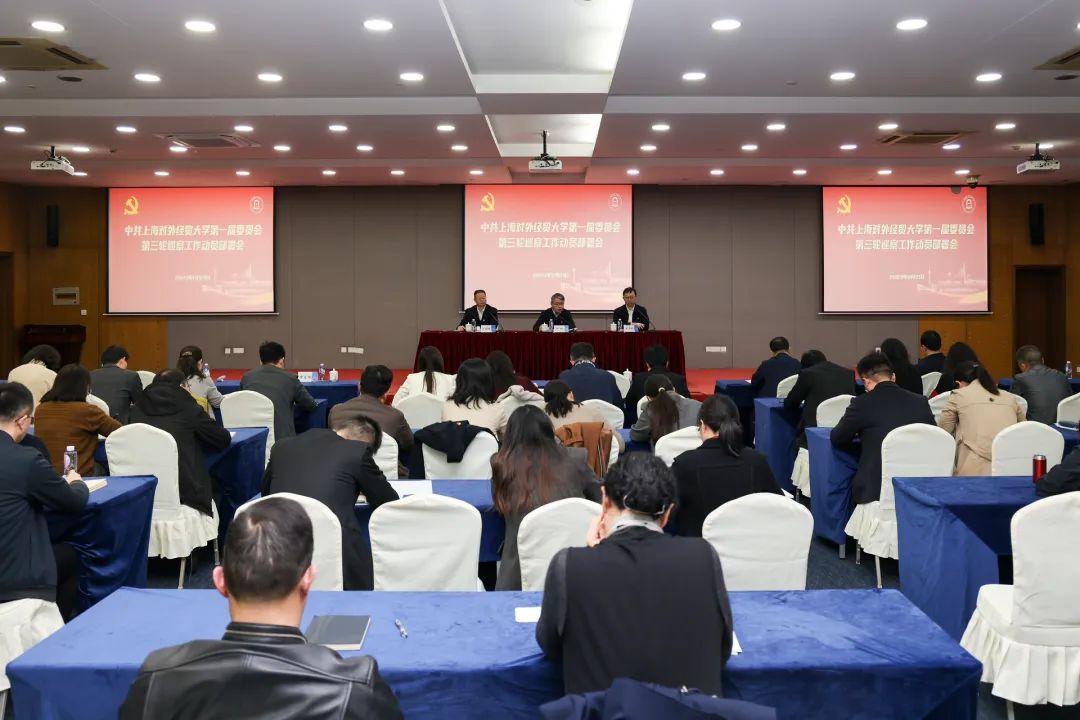 11月21日下午,中共上海对外经贸大学第一届委员会第三轮巡察动员部署会在信息楼526会议室召开。学校党委中心组成员、党委巡察工作领导小组成员、全体中层干部、巡察办成员、巡察组成员、专兼职纪检监察干部、教工支部书记、系主任参加会议。会议由校党委副书记、校长、巡察工作领导小组副组长汪荣明主持。