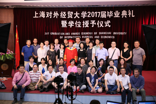 尽管大雨滂沱,已近半百的1987届老校友们仍早早地到达古北校区,与昔日的同窗拥抱、畅谈。10点半,校友们一同乘车来到松江校区。阔别母校30年,他们纷纷感慨校园发展变化之大,“要知道,我们当年读书的时候还没有这个校区呢,扩展太快了,变化太大了。”一名校友一边观摩信息楼,一边发出感叹。随后,他们来到图文信息大楼507室观看正在举行的毕业典礼,并与新上任不久的校长朱国宏教授合影留念。在结业仪式现场的合影留念让相隔30年的新老校友们仿佛开启了时空对话,相比毕业生们即将离开的依依不舍,老校友们返校表明了上经贸大的凝聚力和对母校深厚的情谊。