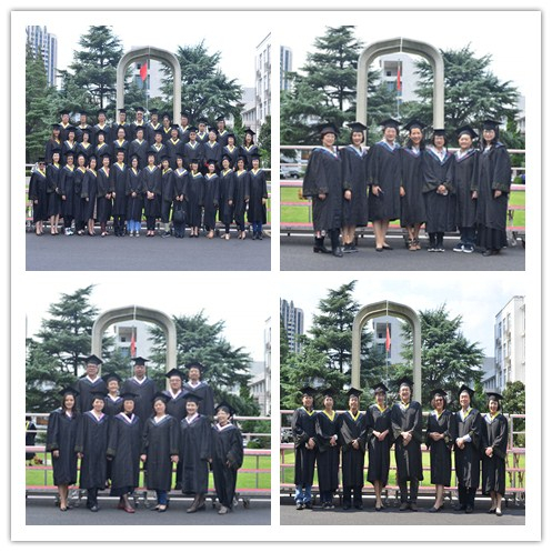 座谈会后,校友们换上学士服来到知识门前合影留念,重温了当年学习生活过的地方并各自畅谈这三十载的似水年华。