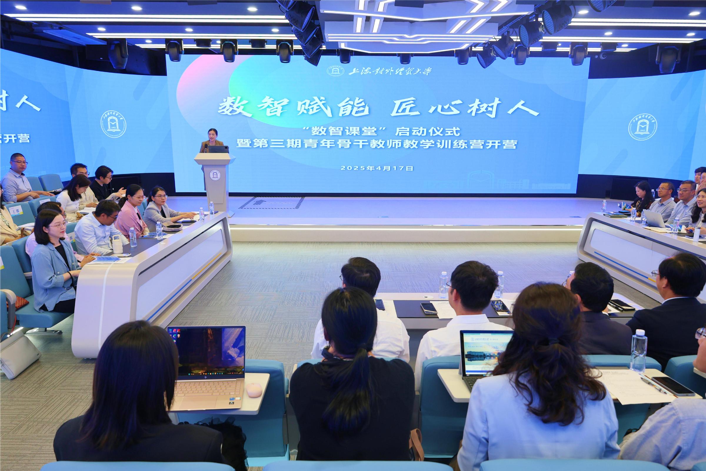 为深入贯彻党的二十大和二十届二中、三中全会及全国教育大会精神,全面落实习近平总书记关于教育的重要论述,特别是关于教育数字化的重要指示精神,以数字化赋能教育改革创新,落实国家教育数字化战略,促进学校高质量发展,4月17日下午,学校在学思楼A1智慧教室举办主题为“数智赋能,匠心树人”的“数智课堂”启动仪式暨第三期青年骨干教师教学训练营开营活动。副校长徐永林出席活动,相关职能部门负责人、各学院教学副院长及第三期青年骨干教师教学训练营全体学员参加会议。会议由教务处副处长李医群主持。