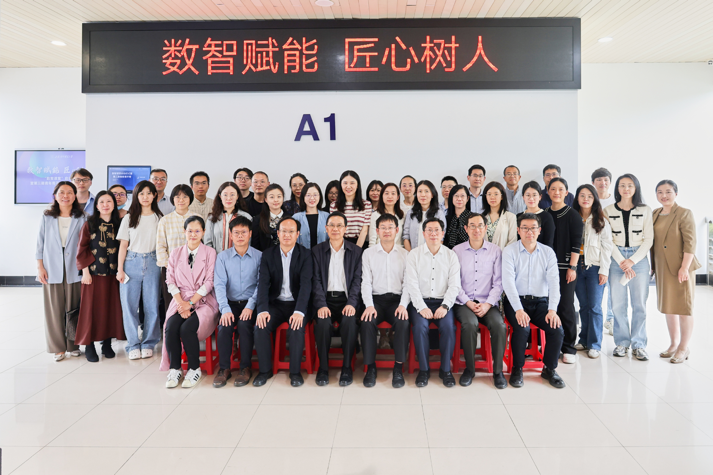 副校长徐永林,教务处处长朱建明,信息化办公室主任刘亮亮,校工会副主席谢峰,党委宣传部副部长施晖,党委教师工作部副部长、人事处副处长王胤卿,共同按下启动键,标志着我校“数智课堂”正式启动,第三期青年骨干教师教学训练营开营。